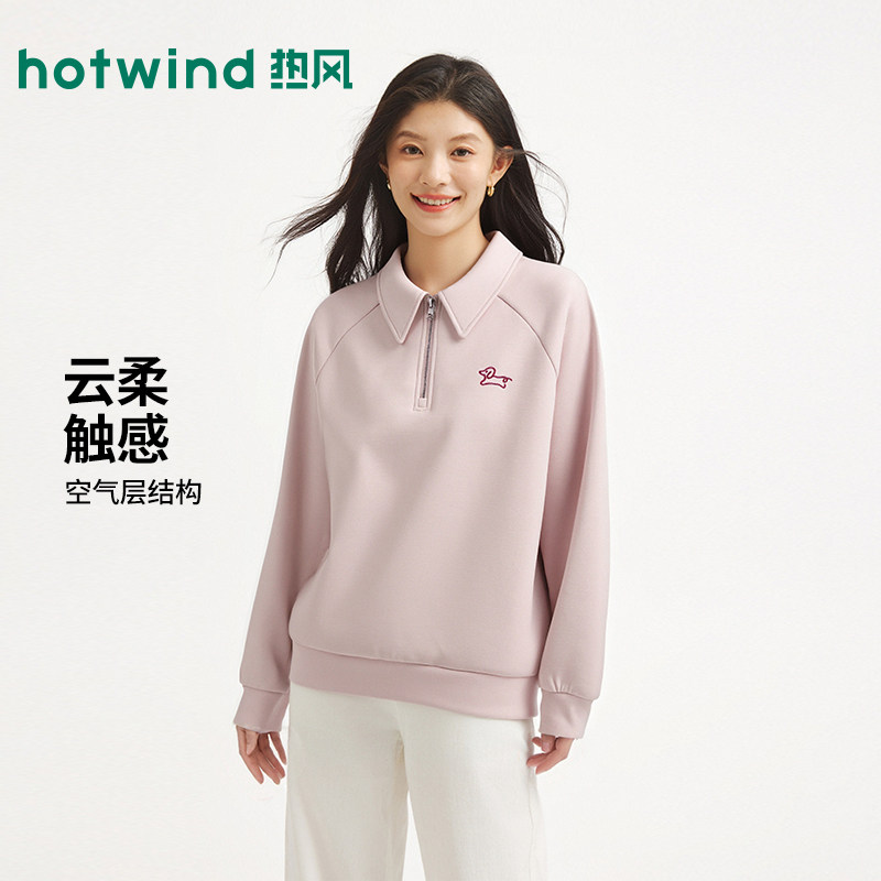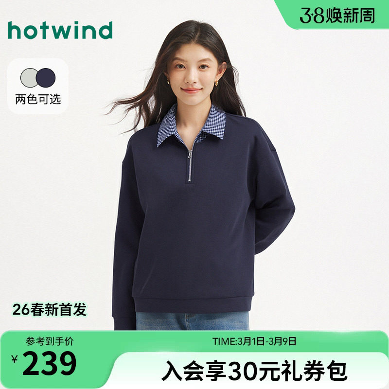 热风女士卫衣2026年春季新款半拉链翻领卫衣宽松学院风百搭上衣