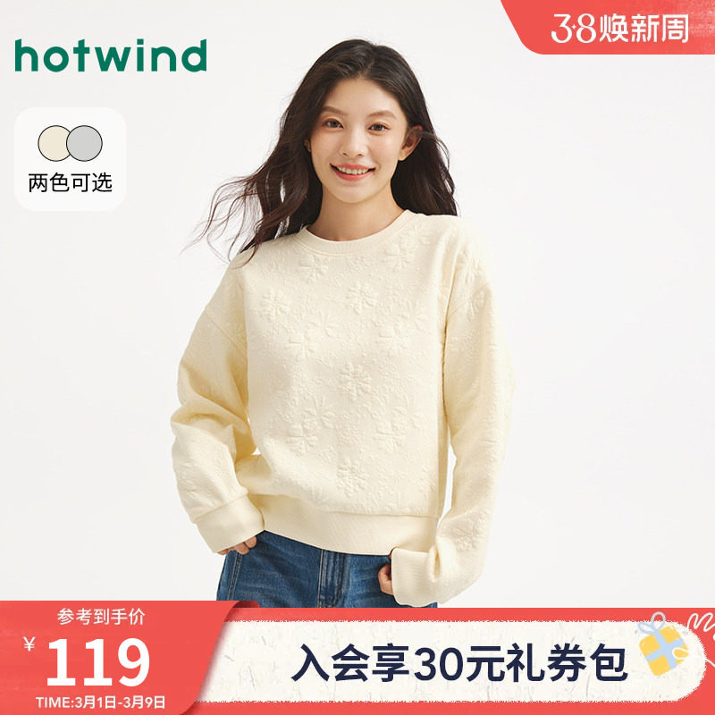 热风女士套头卫衣内搭打底衫2025年秋季新款肌理提花圆领卫衣上衣