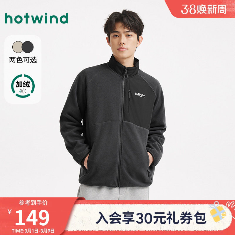 热风男士毛绒开衫卫衣2025年冬季新款休闲拉链卫衣保暖内搭内胆