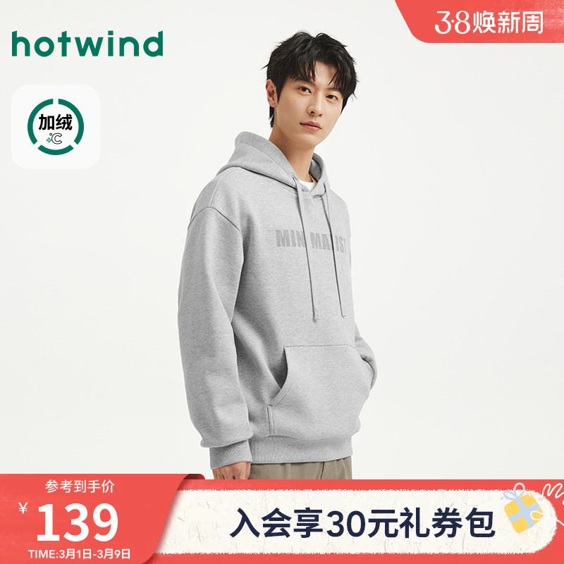 热风男士加绒卫衣2025年冬季新款肌理字母连帽卫衣美式复古卫衣
