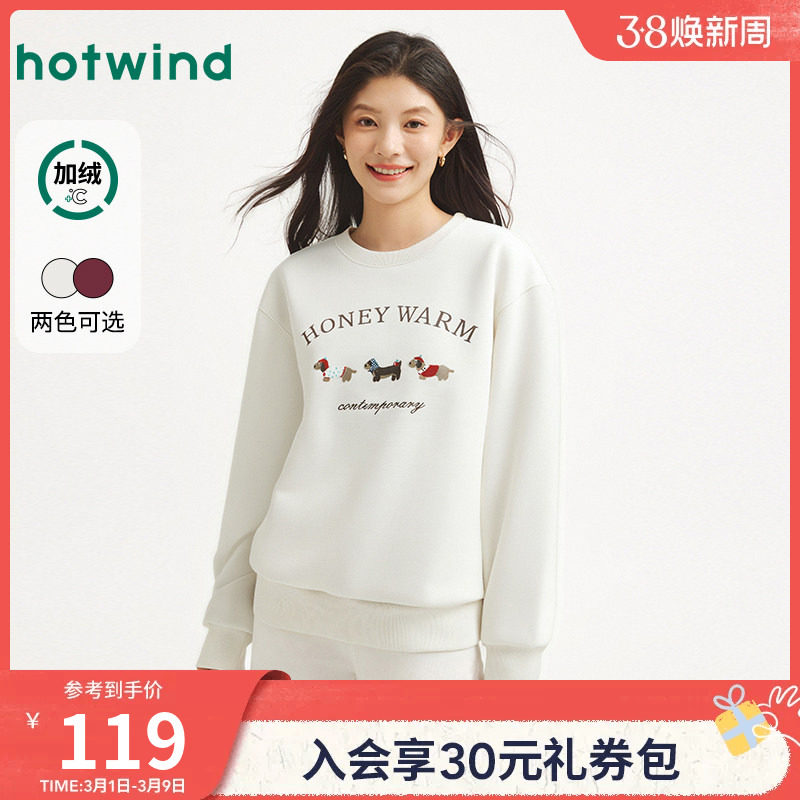 热风2025年冬季新款女士可爱小狗字母圆领卫衣宽松偏厚柔软亲肤