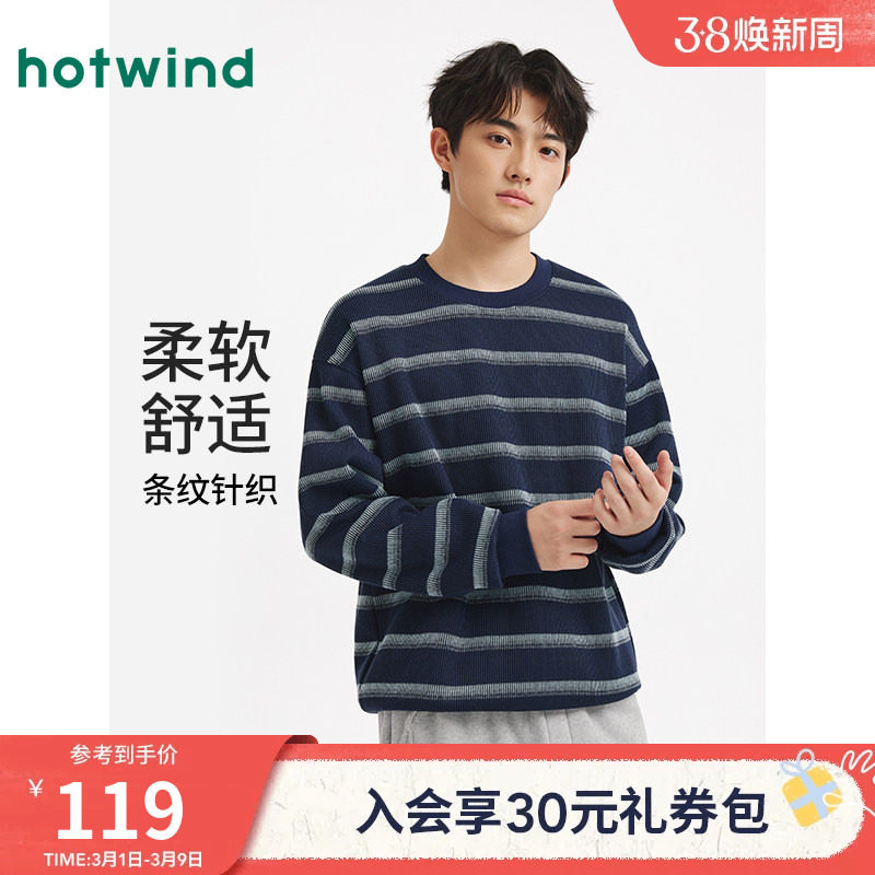 热风男士加绒卫衣2025年冬季新款时尚条纹宽松保暖内搭卫衣打底