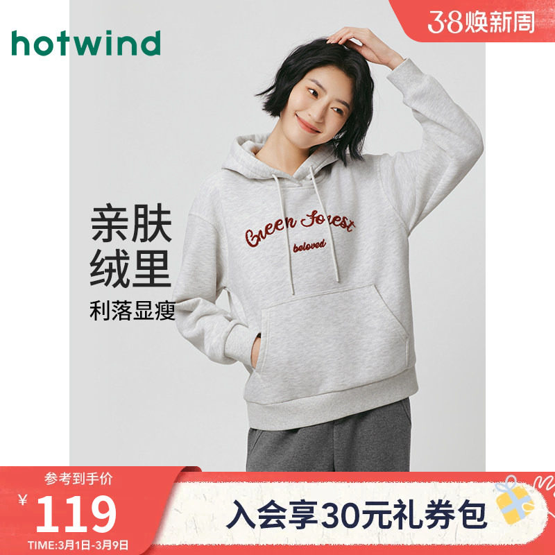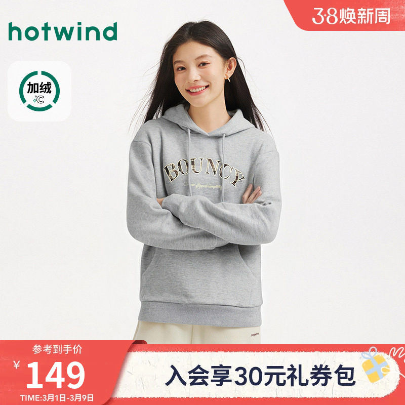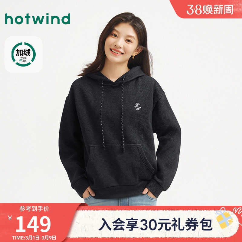 热风女士连帽卫衣内搭上衣2025年冬季新款斜纹连帽磨毛内里卫衣