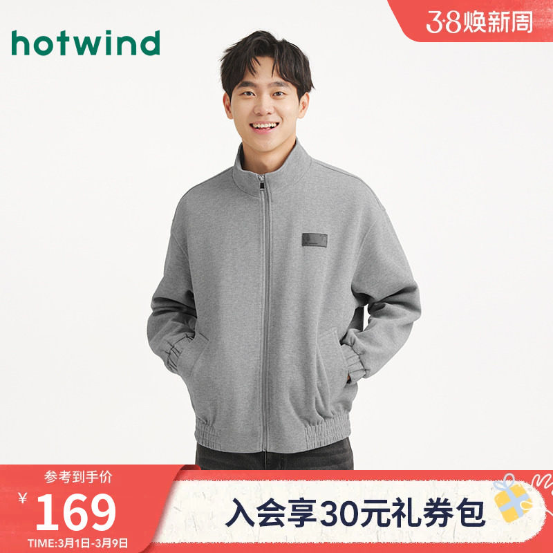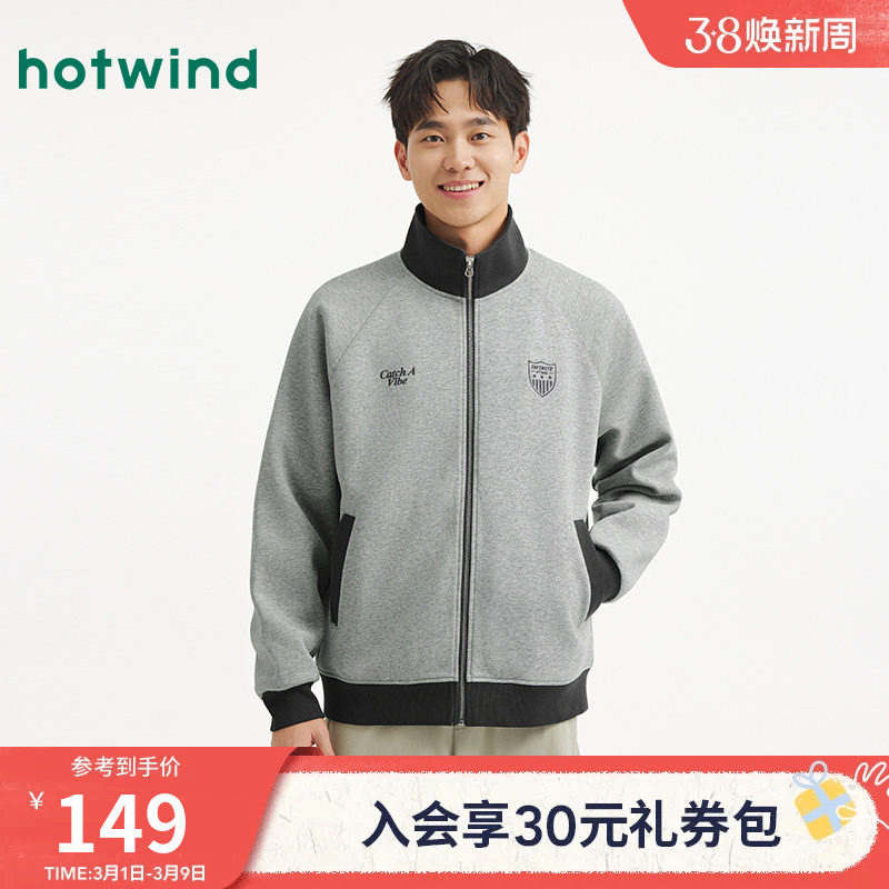 热风男士立领卫衣拉链开衫轻薄外套2025年秋季新款印花开衫卫衣