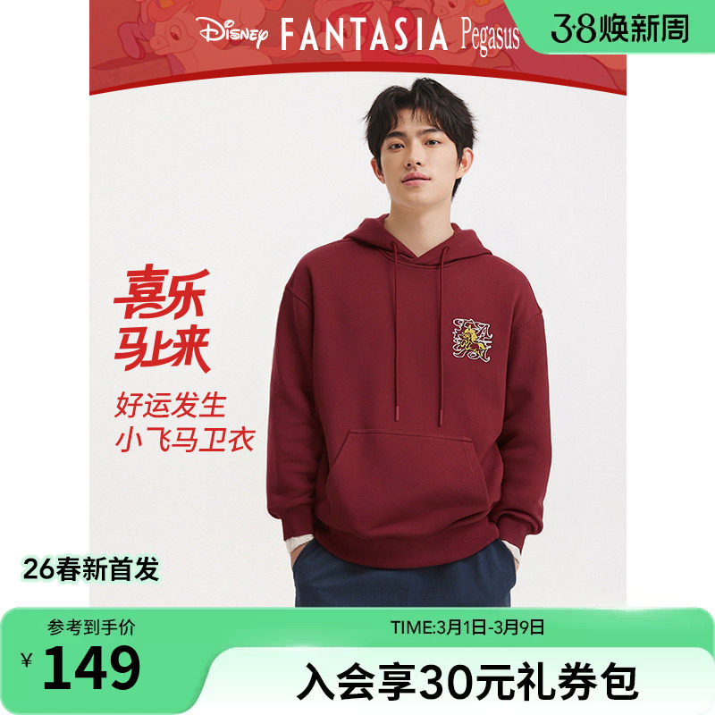【迪士尼系列】热风2026年春季新款男士小飞马新年红色情侣卫衣