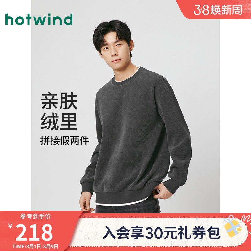 热风男士加绒卫衣2025年冬季新款假两件卫衣韩系宽松内搭打底衫