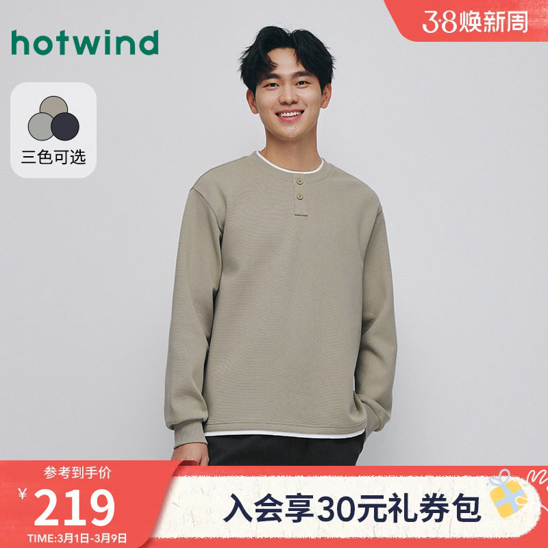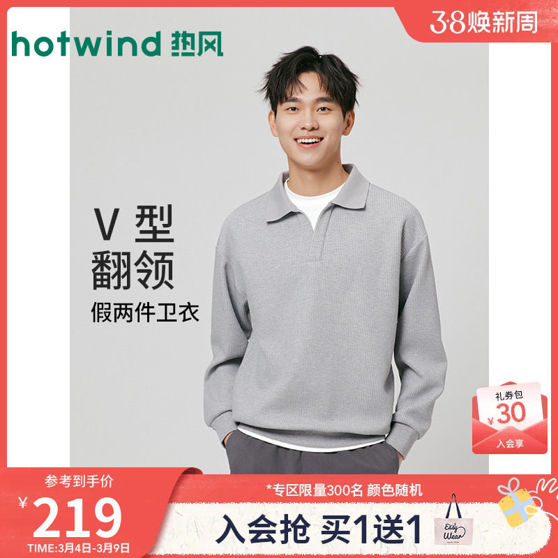 热风男士卫衣2026年春季新款V型翻领假两件卫衣百搭舒适套头