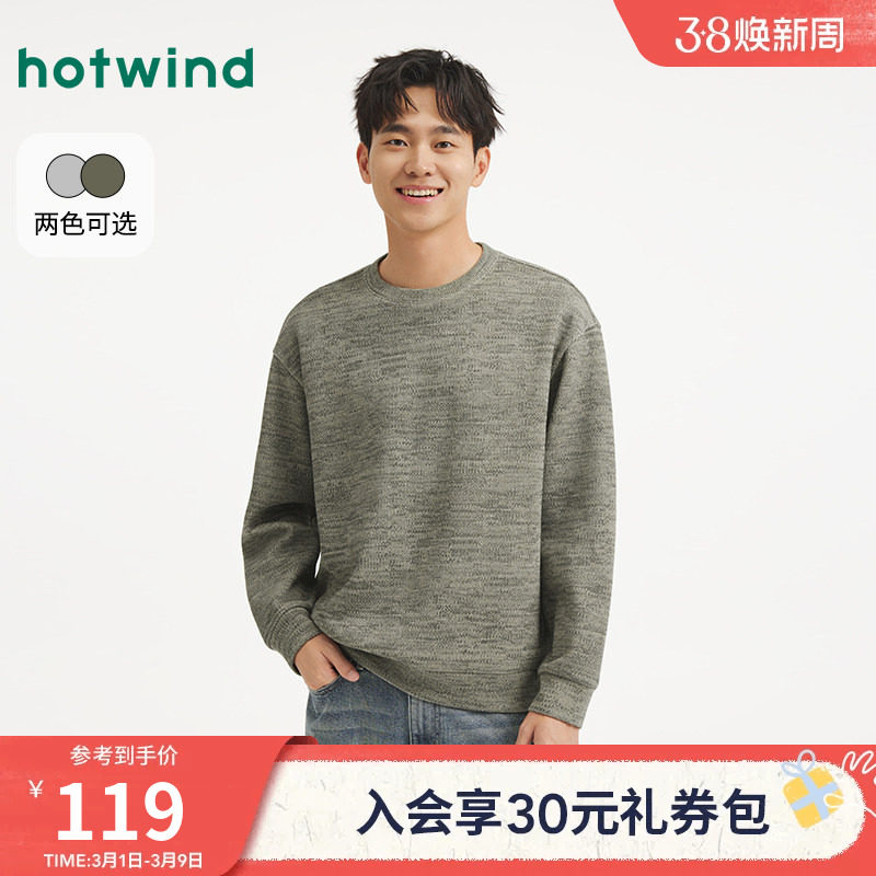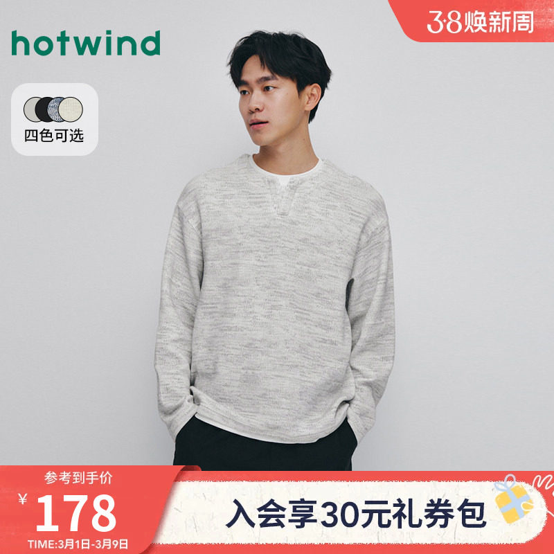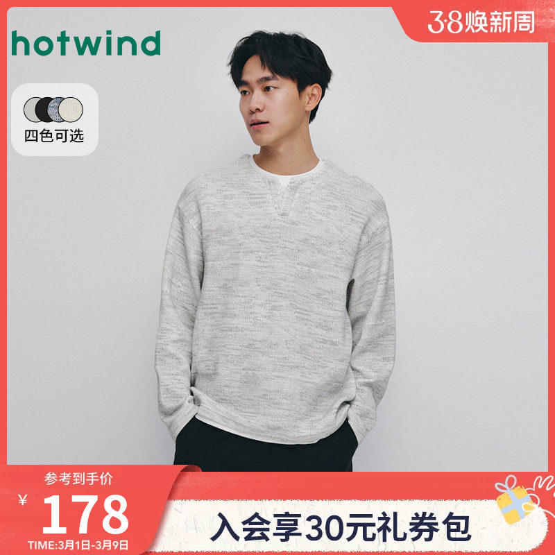 热风男士卫衣圆领韩系宽松打底衫2026春款假两件时尚韩系简约卫衣