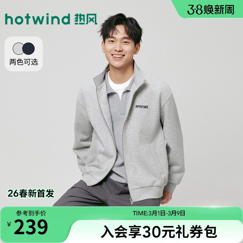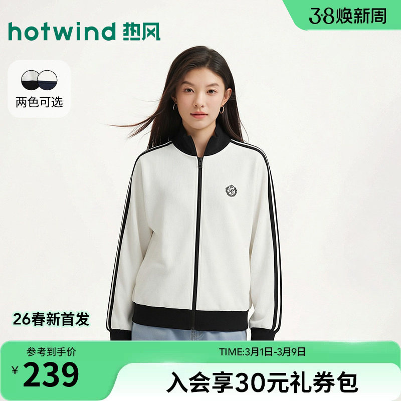 热风女士立领卫衣夹克外套上衣2026年春款开衫宽松拉链卫衣上衣
