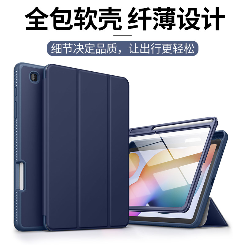 牧行者适用三星Galaxy Tab S6 Lite平板皮套保护壳新款带笔槽易拿取带屏保防摔智能休眠三折外壳支架简约纯色
