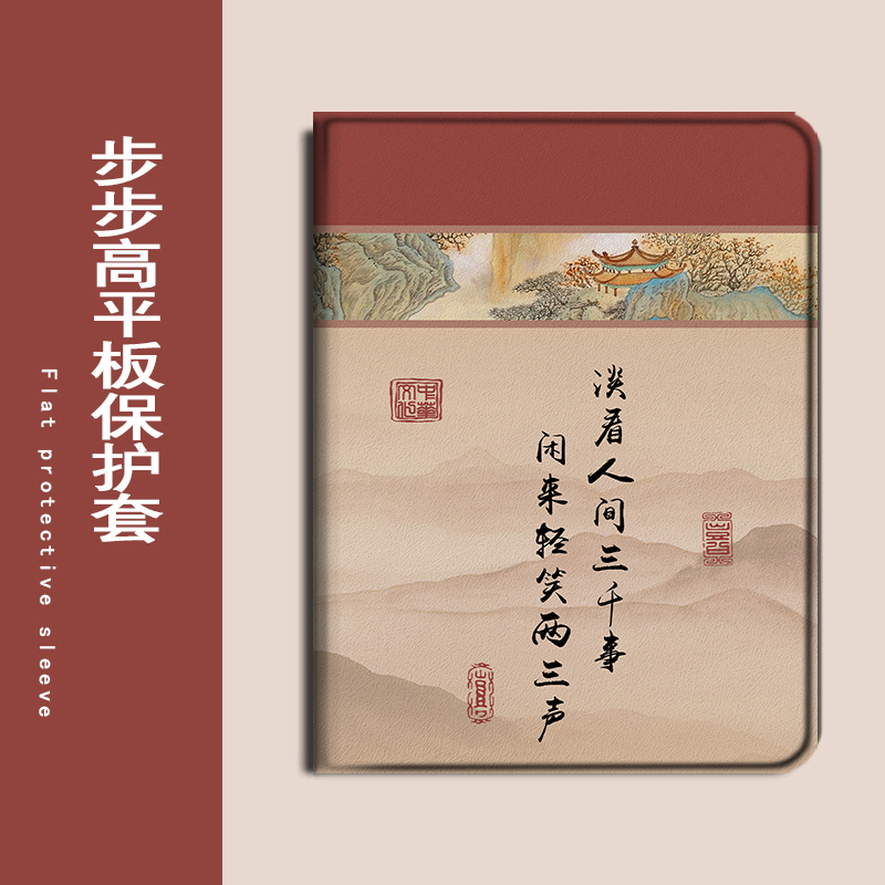 山水画适用步步高s6学习机10.1保护套12.7英寸学生皮套s5中国风文字s3钢化膜x2小度G16智能G12三星平板壳复古