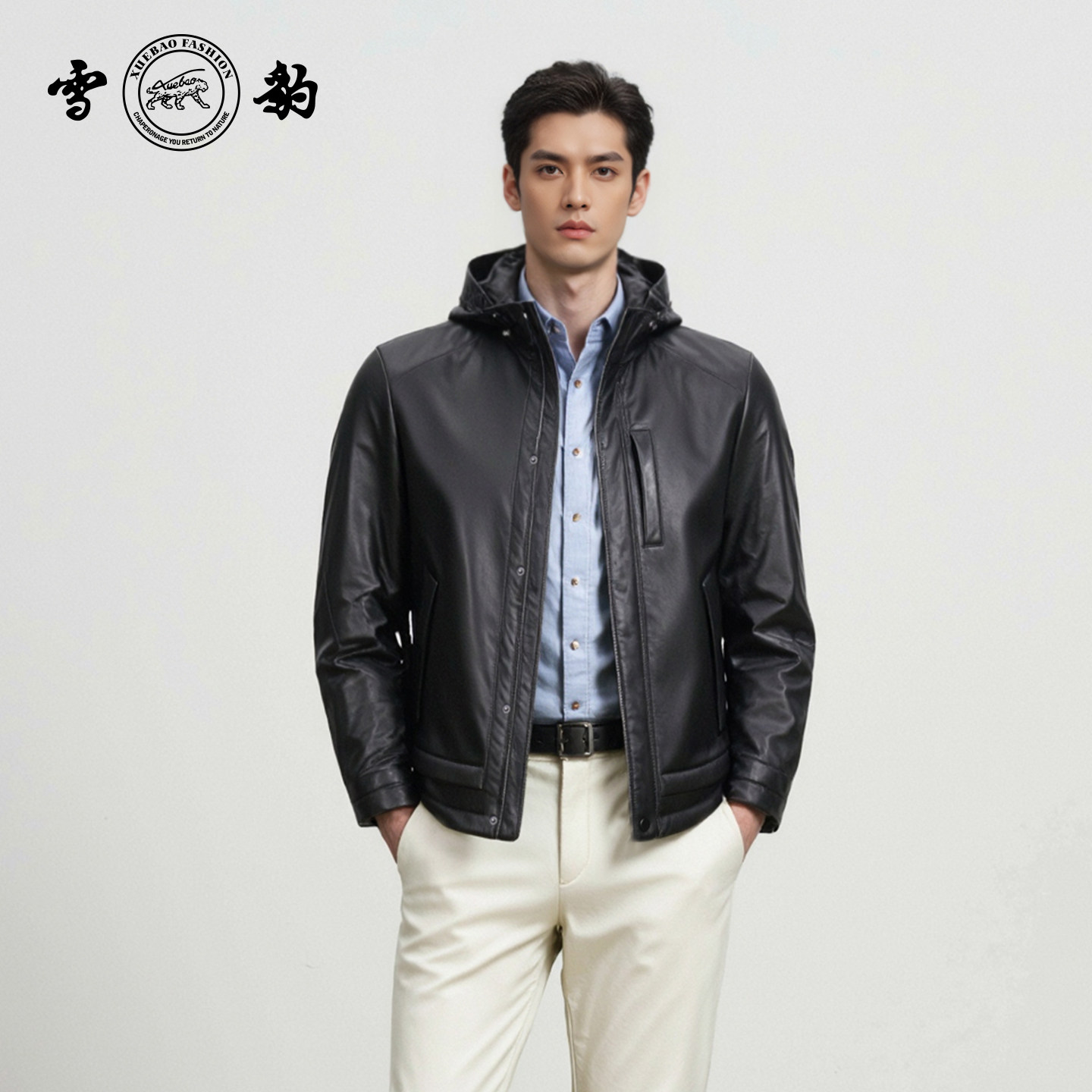- 皮羽绒男真皮