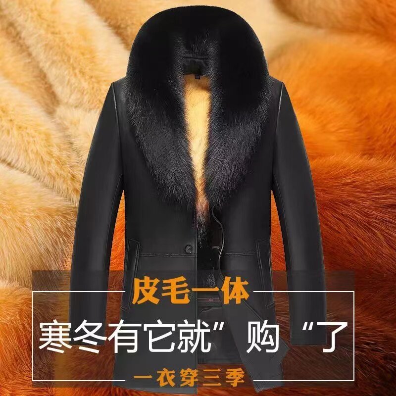 - 皮衣男皮毛一体外套