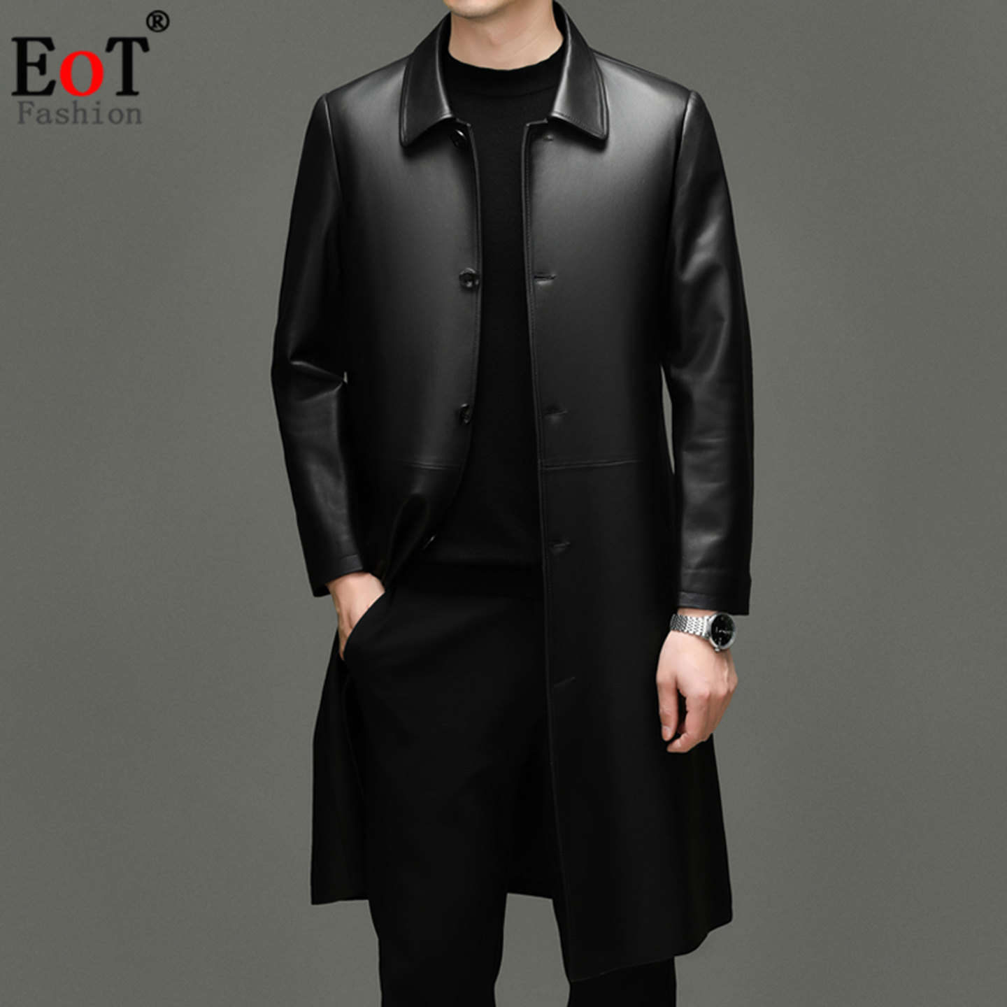 - 男士 长款 皮衣