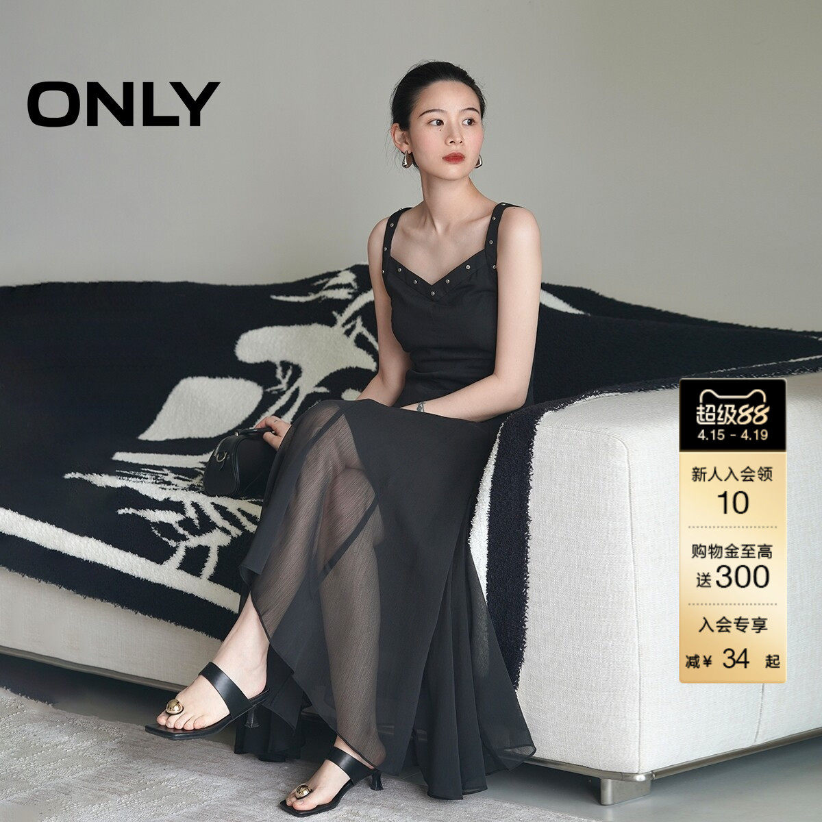 ONLY2026夏季新款松弛感裙子度假风自由调节吊带设计长裙连衣裙