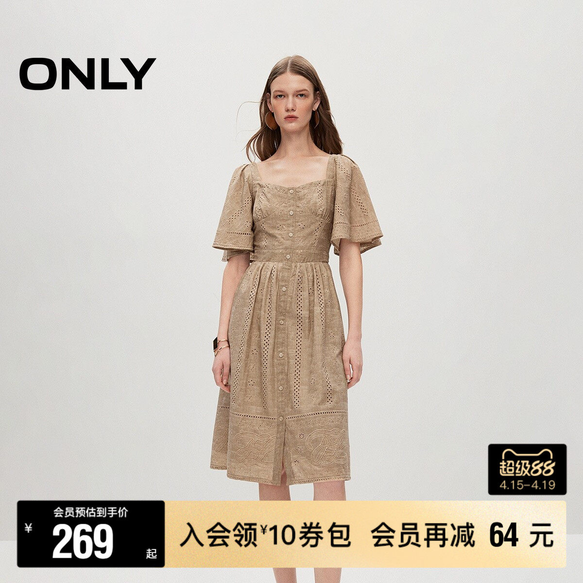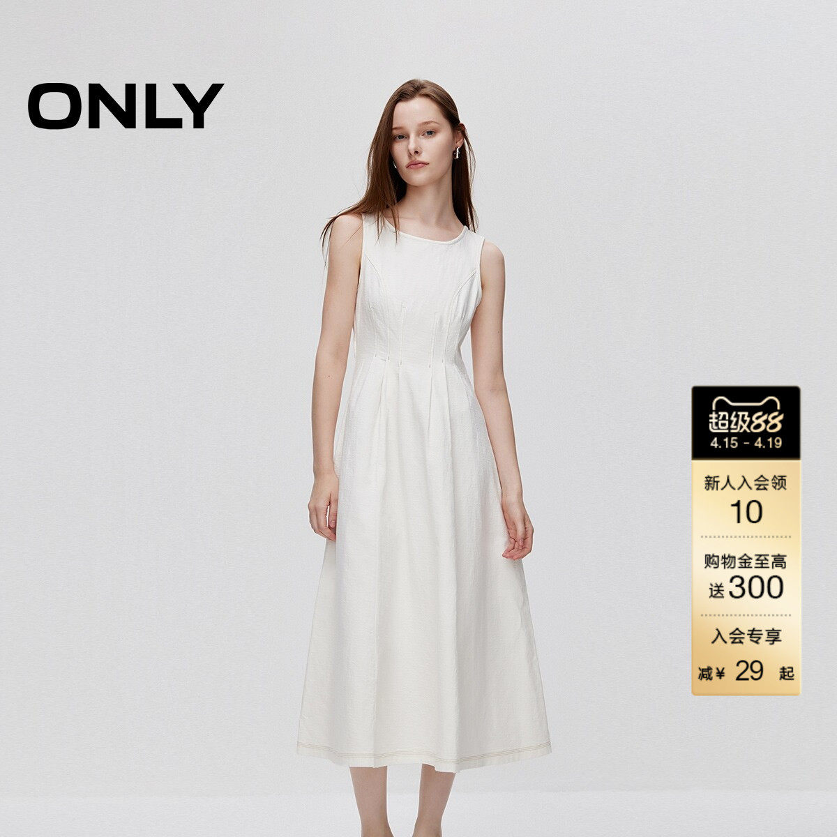 【ONLY奥莱】春夏肌理感复古U型领腰身镂空无袖A字中长款连衣裙女