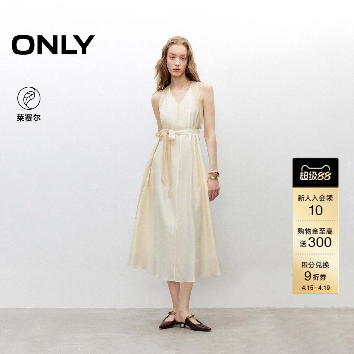 【ONLY奥莱】春夏优雅浪漫挂脖V领A字系带收腰显瘦长裙连衣裙女