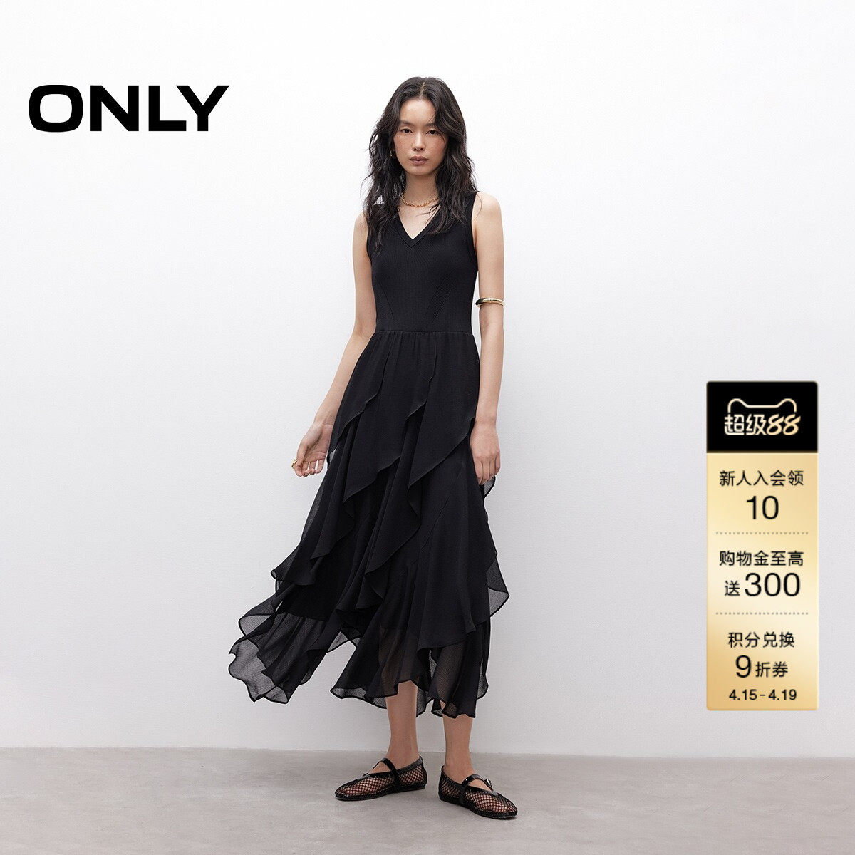 ONLY2026春季新款艺术感花苞裙小黑裙针织拼接裙子长裙连衣裙女