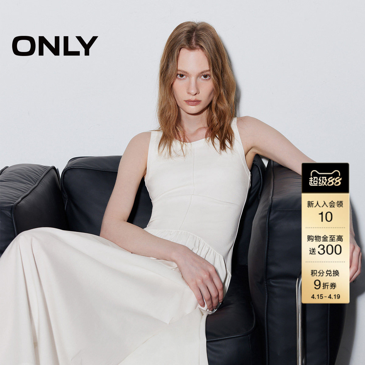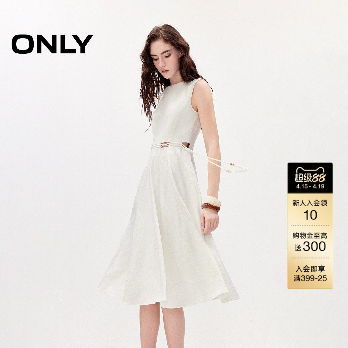 ONLY2026夏季新款简约摩登腰部镂空裙子圆领无袖长裙连衣裙女