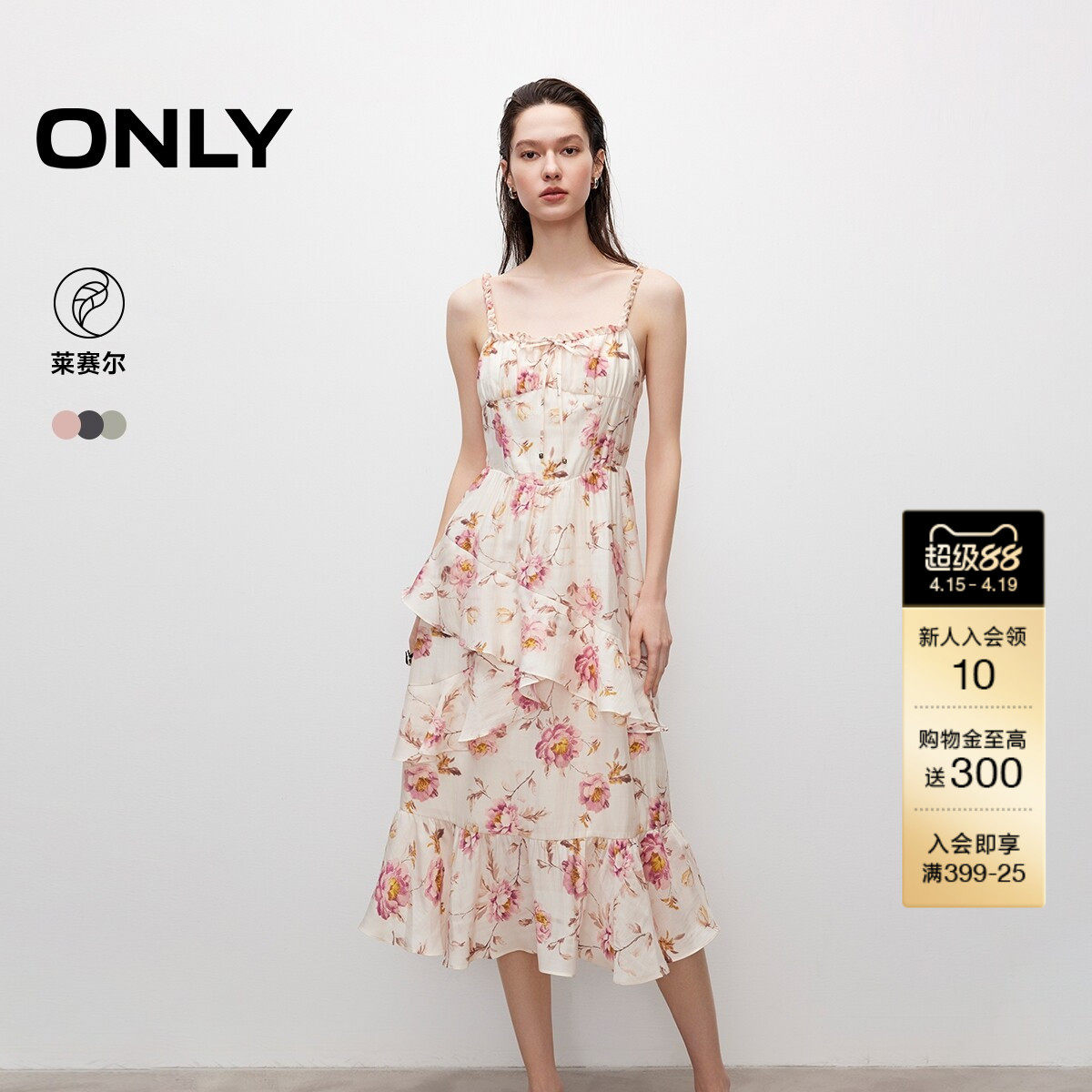 ONLY2026夏季新款法式含莱赛尔收腰花朵印花中长款吊带裙连衣裙女