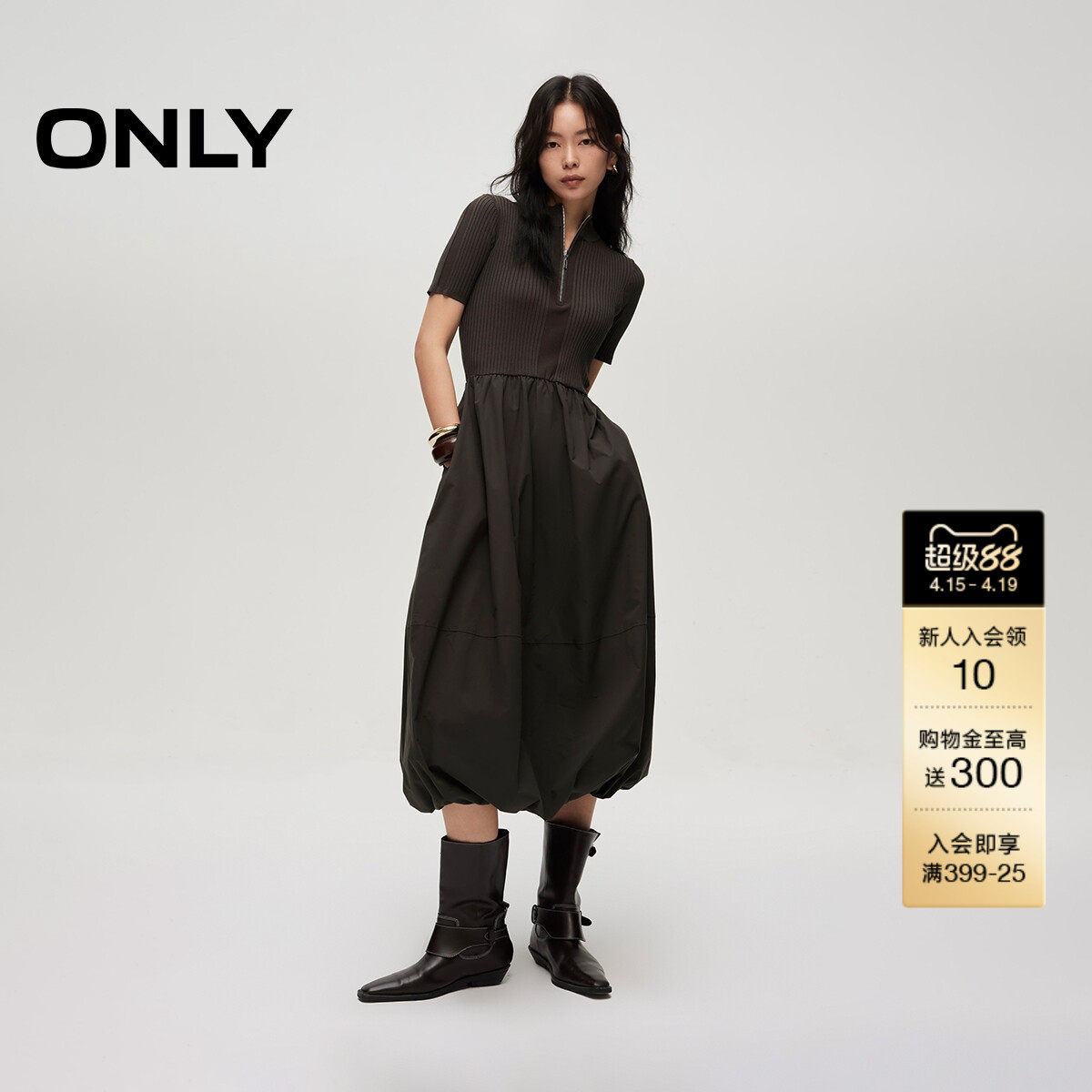 ONLY2026春季新款通勤气质裙子拼接假两件针织A字伞裙长裙连衣裙