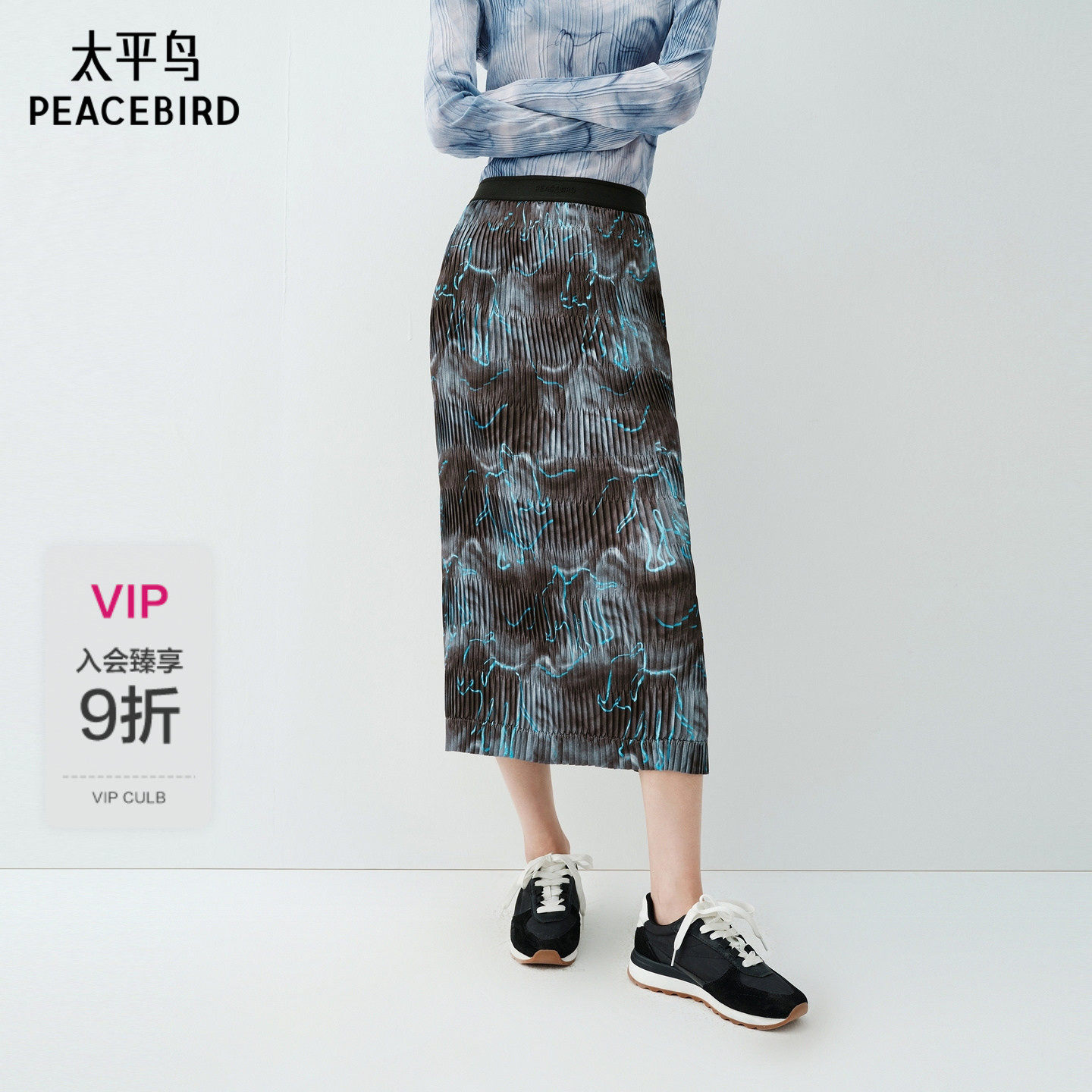 商场同款太平鸟气质压褶半身裙女夏季中长款直筒裙女装A3GFG2322