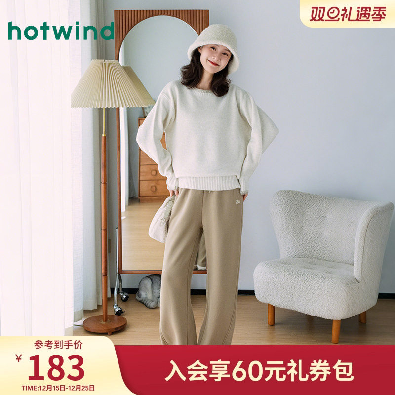 热风女士毛衣圆领打底衫上衣2025年冬季新款含羊毛绒感针织衫内搭