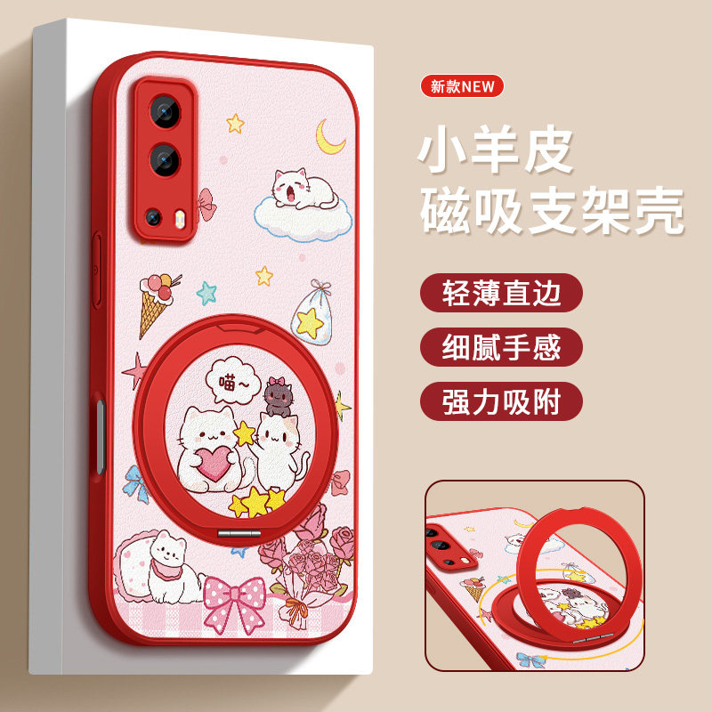 适用iqooz6手机壳新款iQOOZ5保护套z3高级外壳VIVOz5镜头带防摔Z6硅胶后盖叠叠猫磁吸旋转支架男女皮纹支点壳