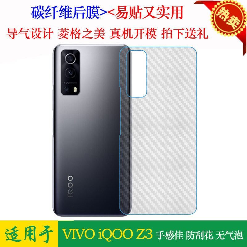 适用于vivo iQOO Z3手机后盖保护膜5G碳纤维后膜V2073A磨砂背贴薄半隐形无胶不翘边导气耐磨超薄反面膜防灰尘
