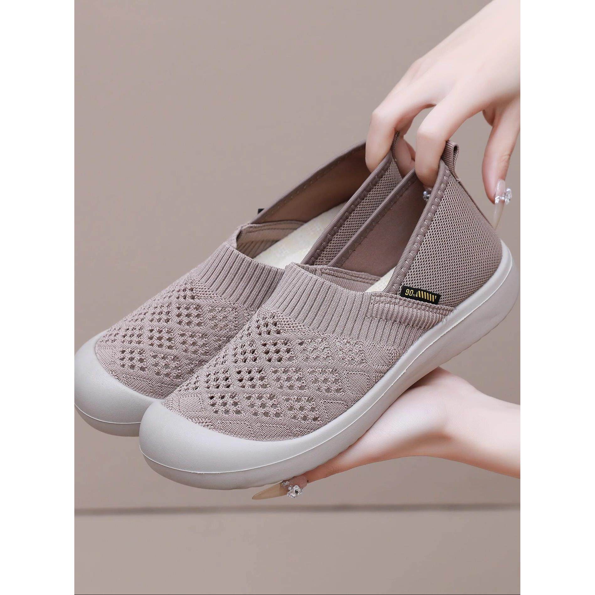 老年人健步鞋防滑轻便款春新款老北京布鞋飞织单鞋软底舒适一脚蹬