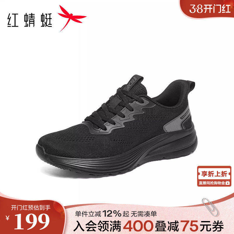 红蜻蜓运动鞋男款2026春季新款男鞋轻便跑步飞织鞋中老年人健步鞋
