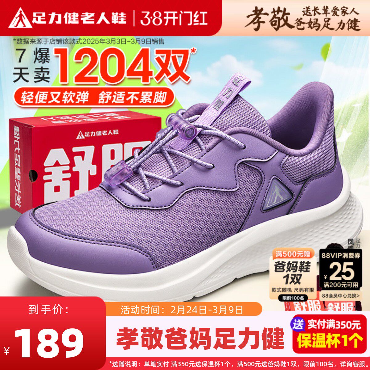 足力健旗舰店网面老人鞋2025年新品凉爽妈妈鞋中老年人健步鞋