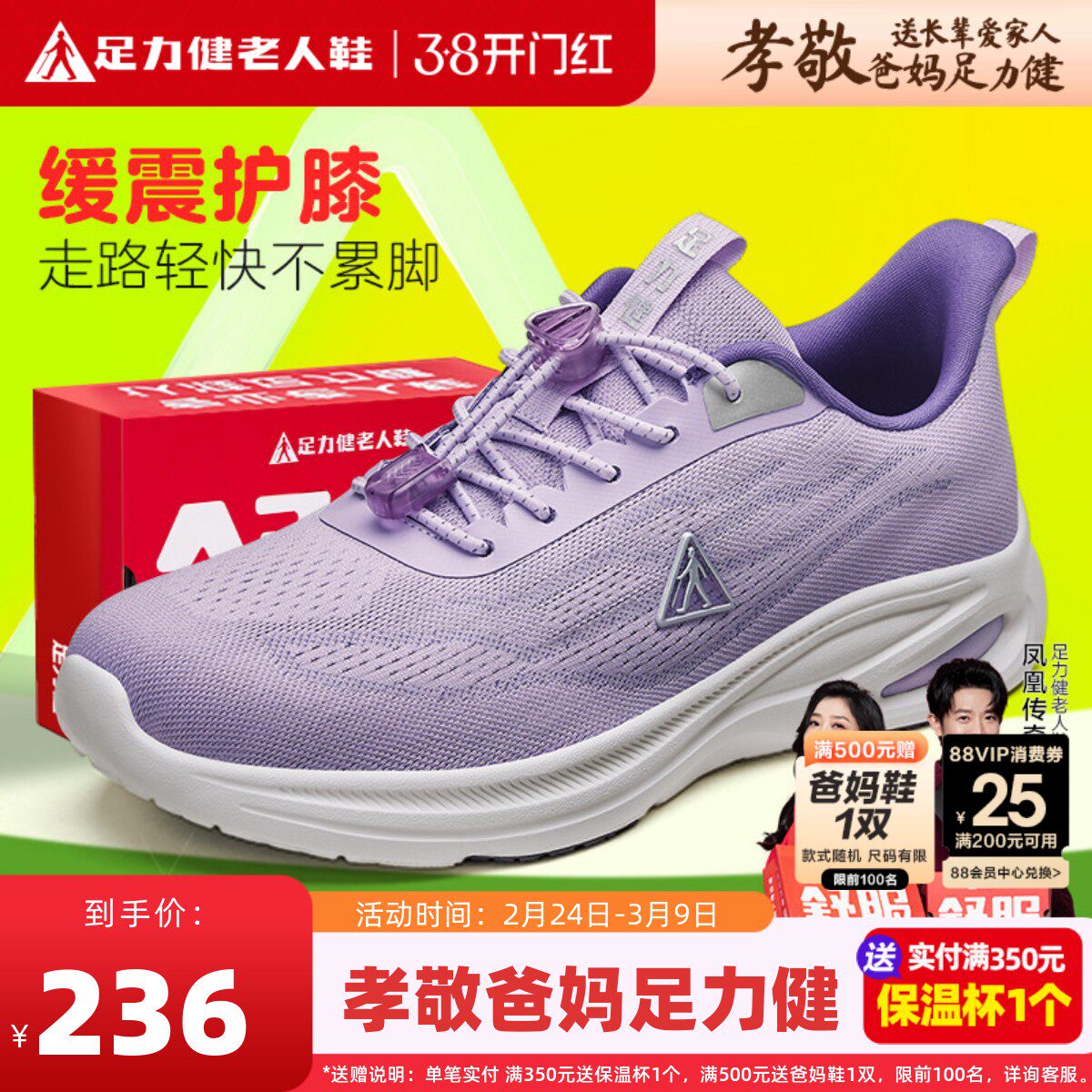 足力健老人鞋官方旗舰店正品休闲运动鞋减震轻便软底老年人健步鞋