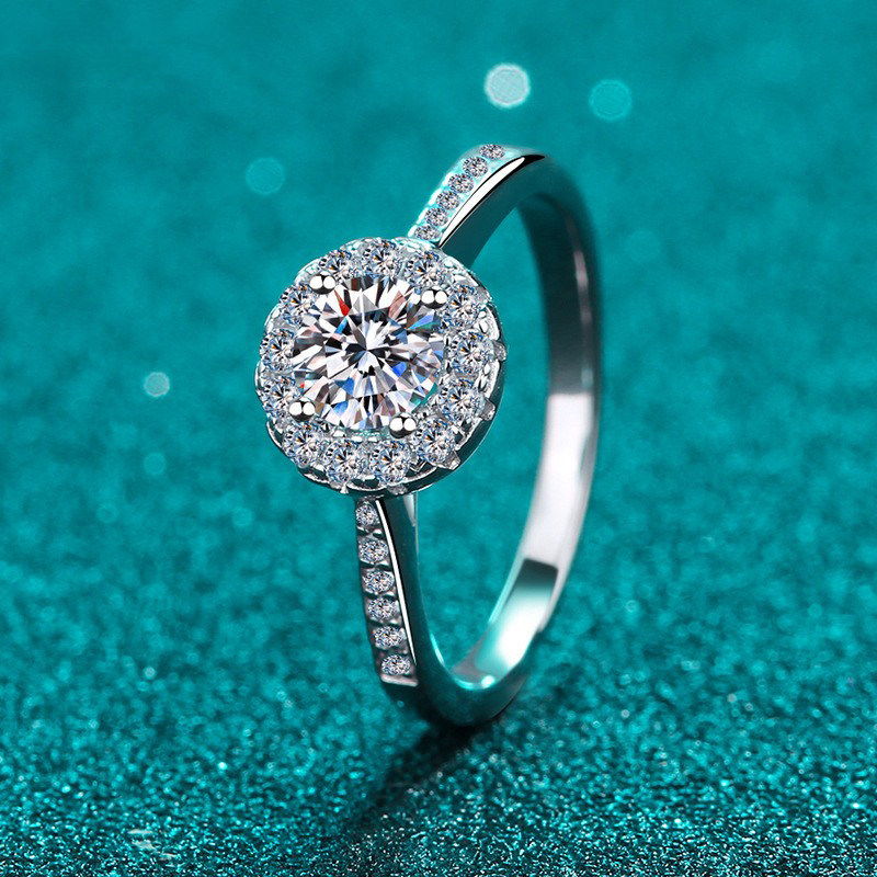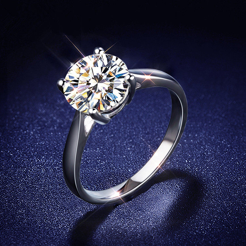 1克拉四爪莫桑石戒指亚马逊热销爆款925轻奢求婚结婚戒跨境批发