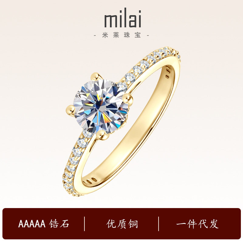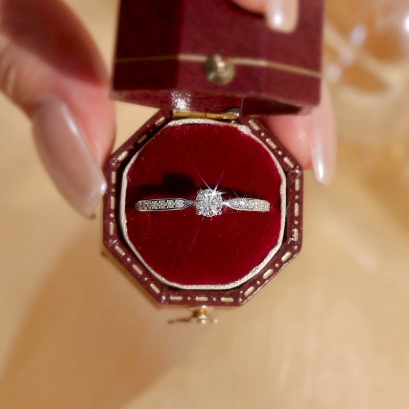 【Drctcy】莫桑钻s925纯银四爪戒指女士钻石婚戒圆形一克拉莫桑石