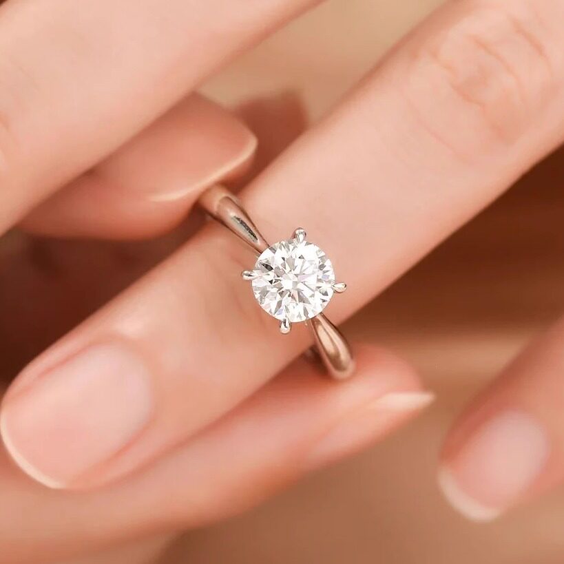 蒂奇亚实拍时尚简约四爪莫桑石戒指925纯银轻奢气质韩版圆形婚戒