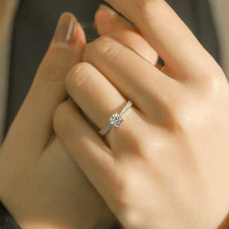 四爪扭臂50分1克拉仿钻石戒指女戒结婚戒指女简约莫桑石钻戒女