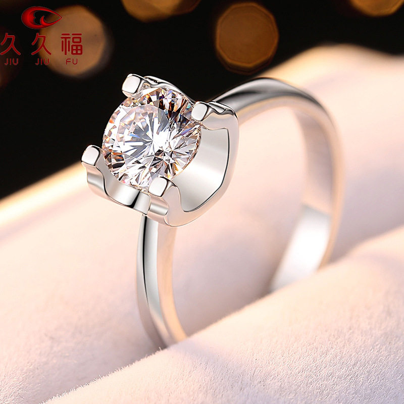 正品进口莫桑石钻戒女经典四爪戒指结婚求婚仿真钻戒简约时尚饰品