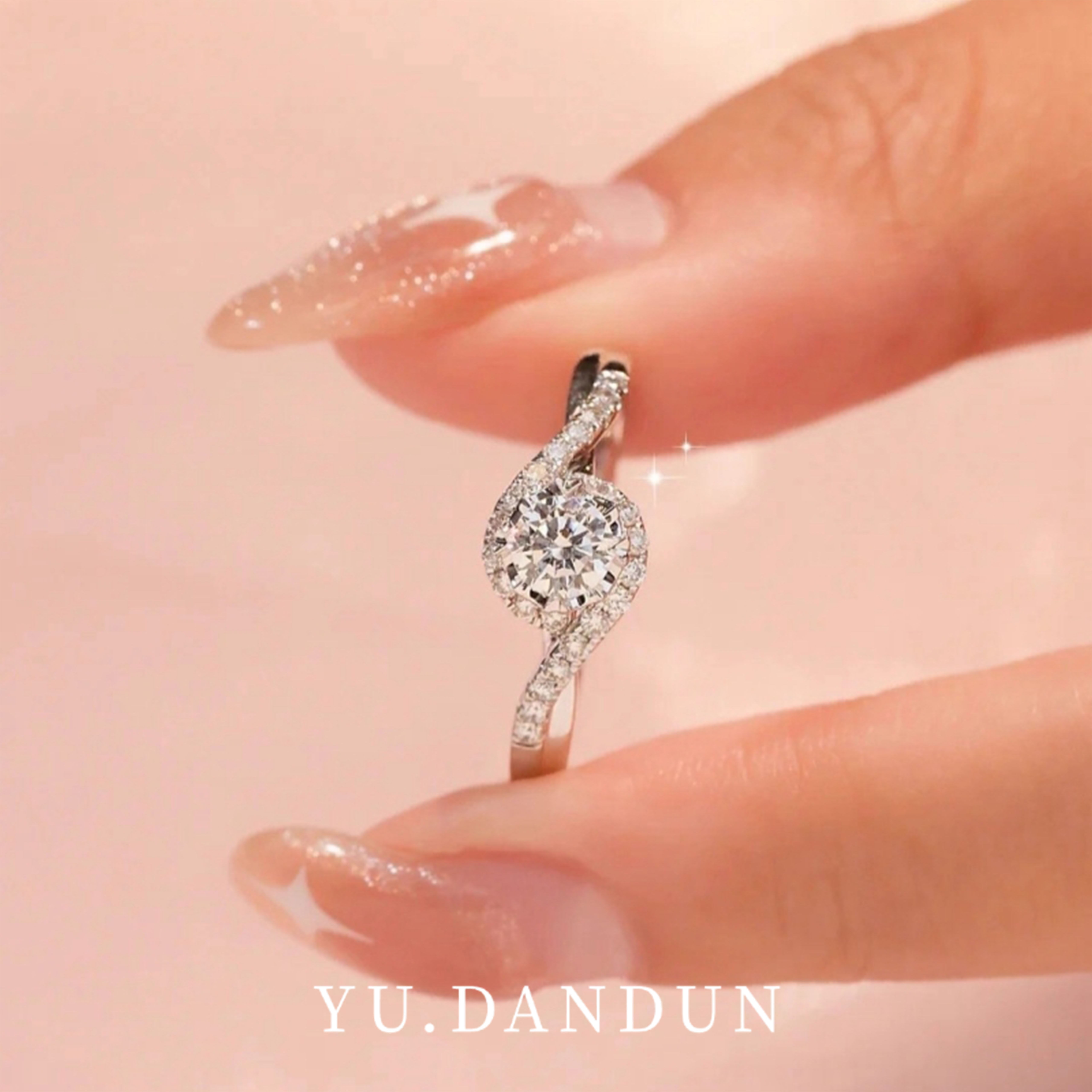 YUDANDUN莫桑戒指1克拉四爪扭臂镶钻戒指时尚轻奢优雅结婚求婚女