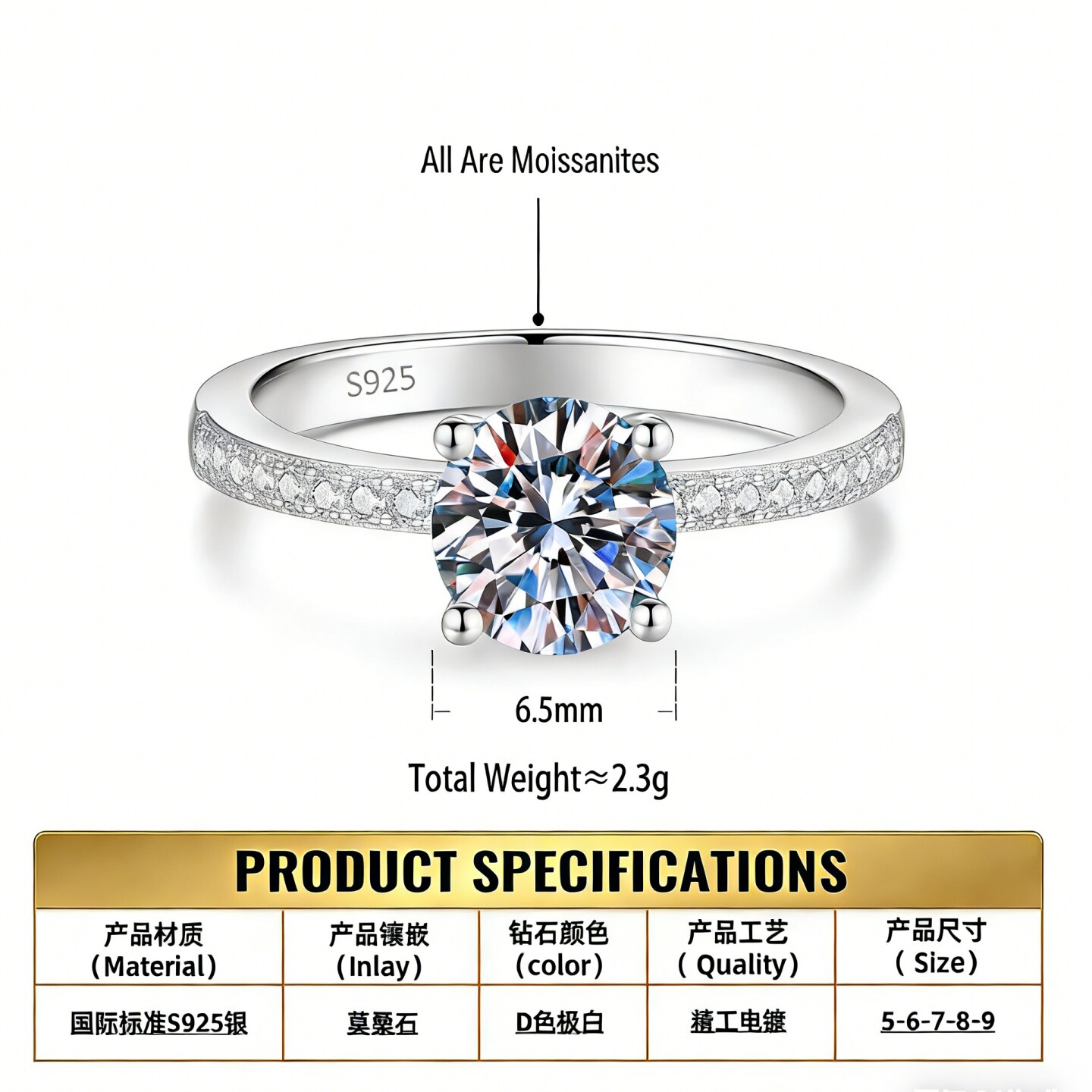 莫桑石戒指四爪[第1名]
