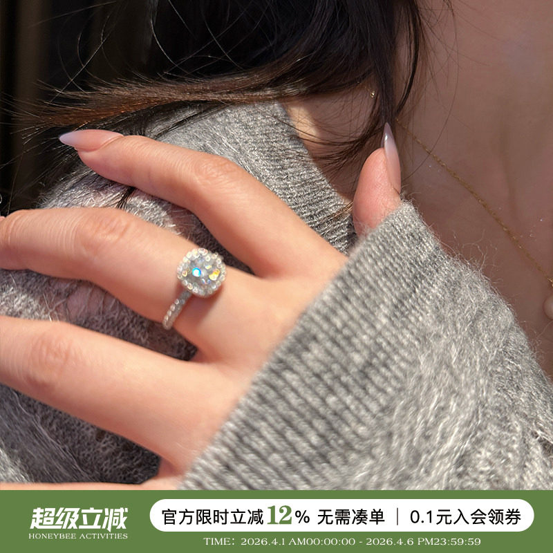 【Drctcy】莫桑钻s925纯银四爪戒指女ins小众钻石饰品莫桑石D色