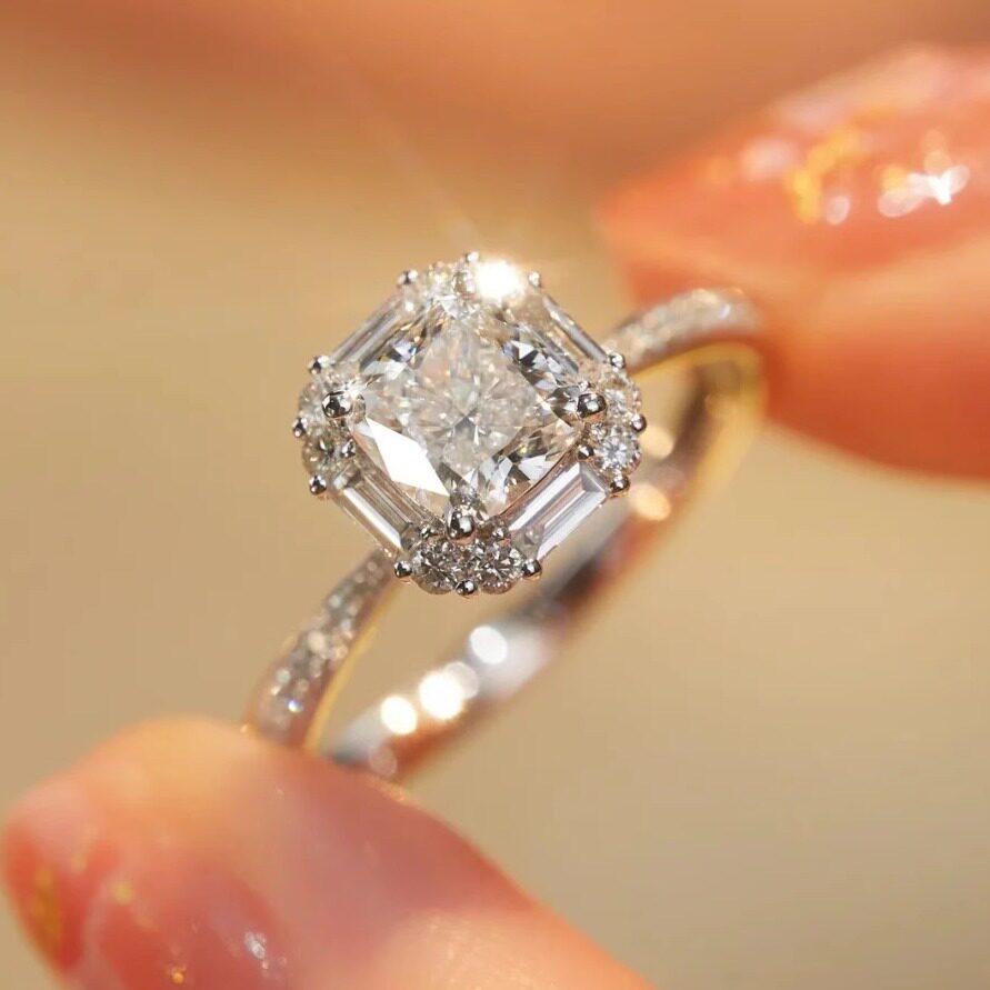 【Drctcy】925纯银四爪方形莫桑石戒指女求婚钻石两克拉莫桑钻D色