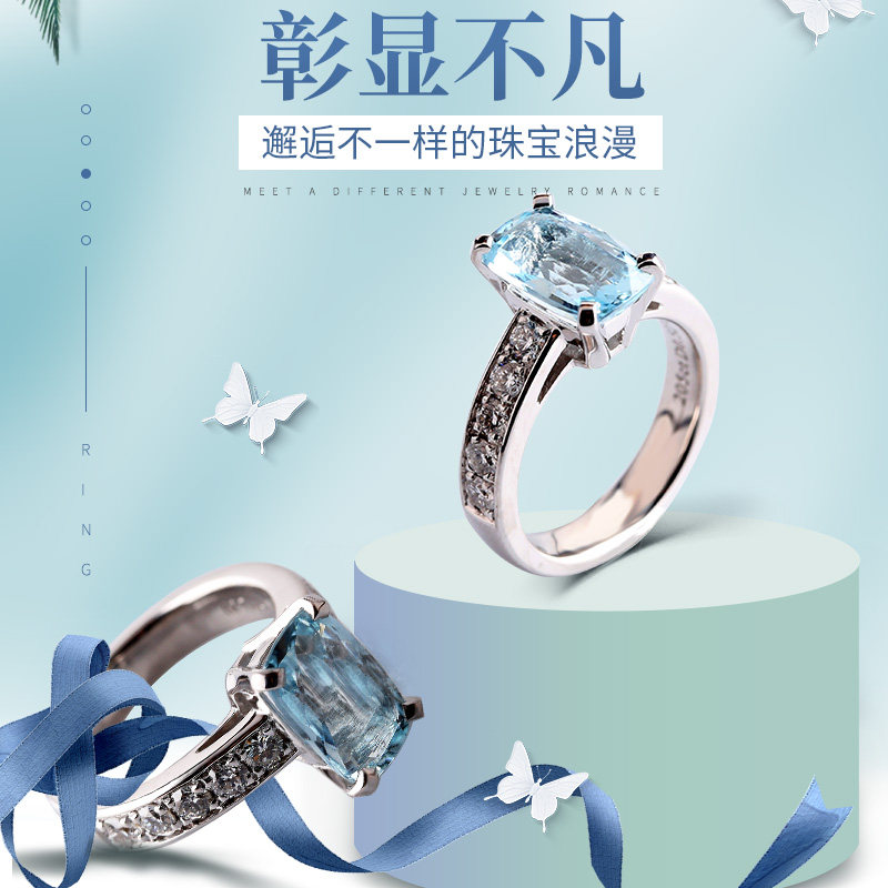 pt950铂金镶嵌蓝宝石四爪戒指女18k白金镶莫桑石钻石指环求婚饰品