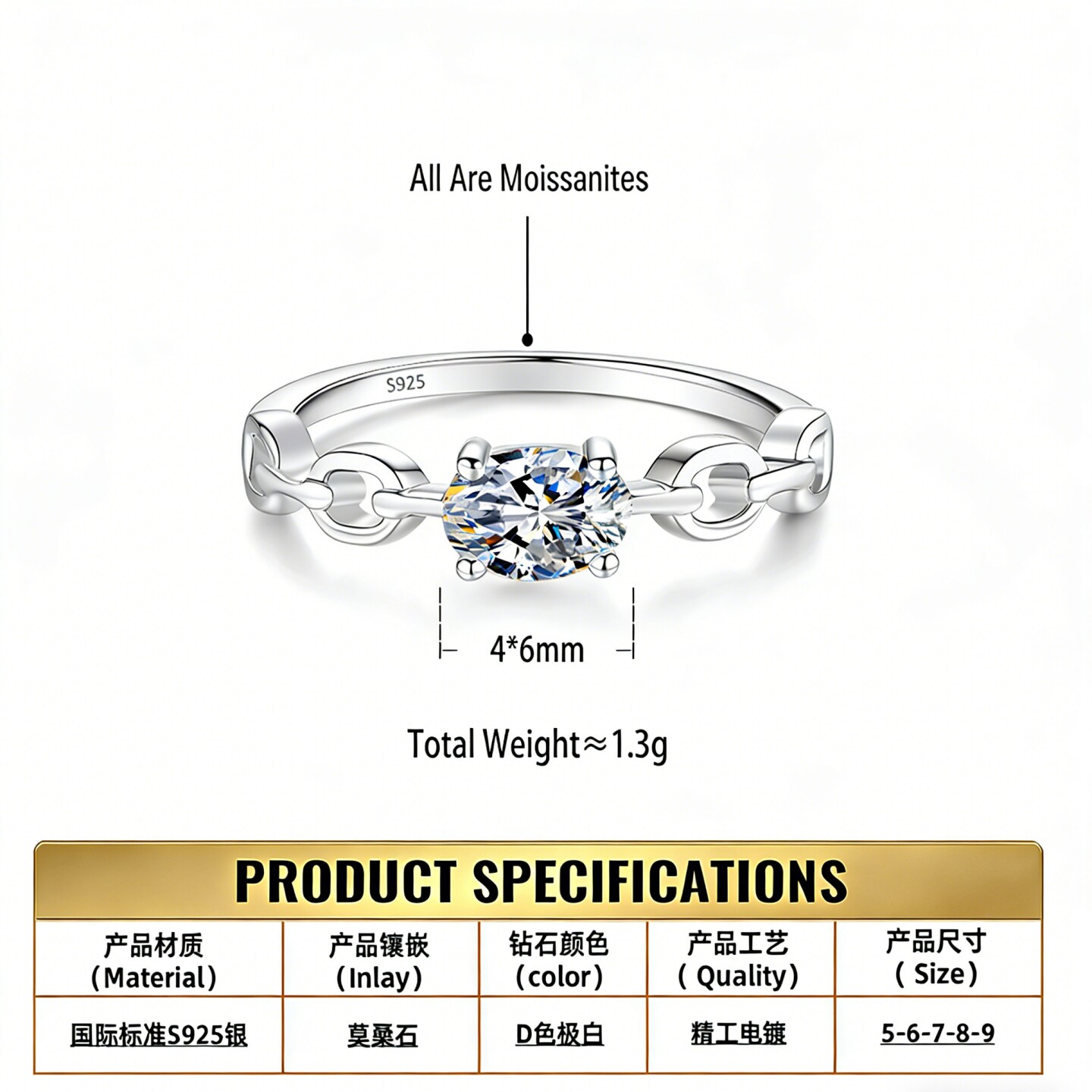 莫桑石戒指四爪相关搜索