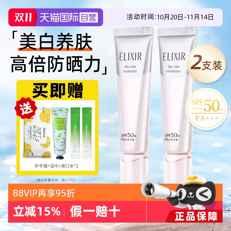 【自营】Elixir/怡丽丝尔防晒霜SPF50+美白保湿清爽不油腻俩支装
