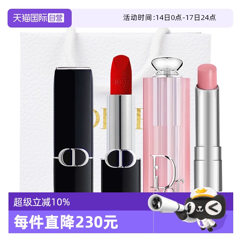 【自营】Dior/迪奥变色口红润唇膏两件套装蓝金唇膏送女生礼物