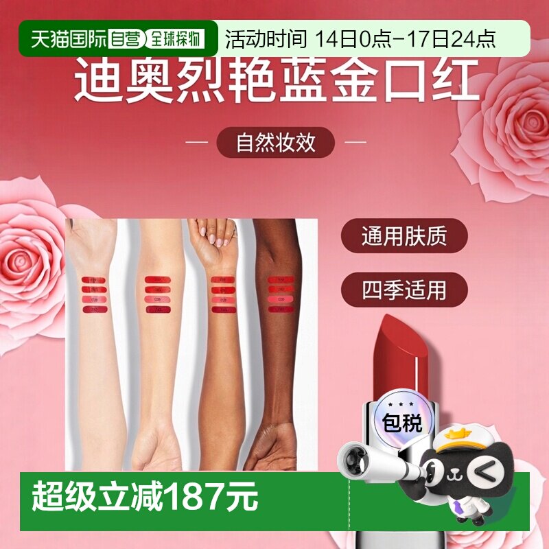 欧洲直邮 Dior迪奥全新烈艳蓝金唇膏口红3.5g正品蜜桃丝绒