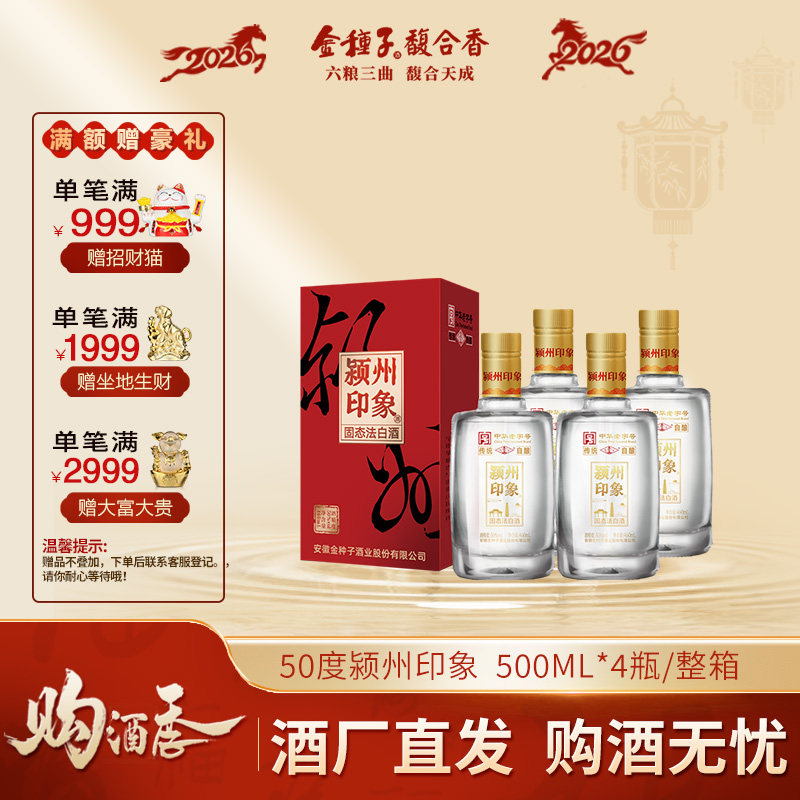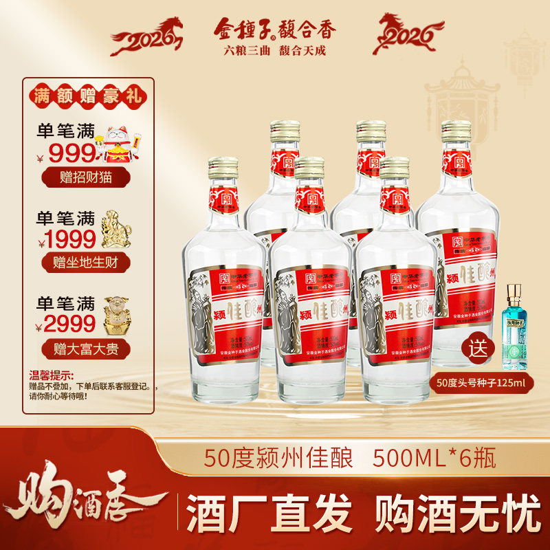 【非整箱】金种子酒颍州佳酿50度500ml*6瓶浓香型白酒中华老字号