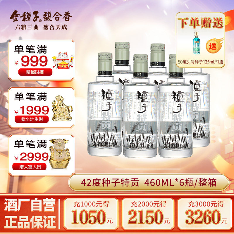 【酒厂自营】金种子种子特贡浓香型白酒42度460ml*6瓶纯粮整箱装