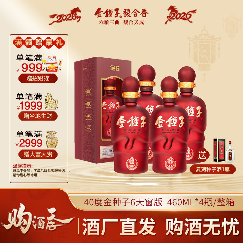 【酒厂自营】金种子6年40度浓香型白酒460ml*4瓶纯粮酿造整箱